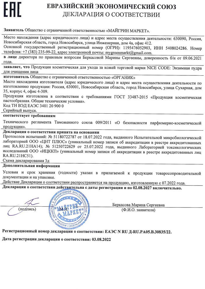 Основные преимущества энзимной пудры Nice Code: